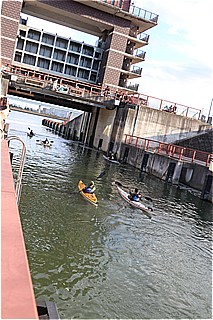 ![]() 閘門を利用して荒川へ向うカヌー |