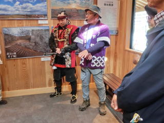 ![]() 郷土博物館金のすず館外での説明 |