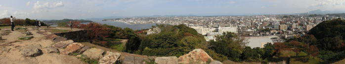 松江市所在、史跡田和山遺跡を見学。弥生中期の3重環濠に囲まれた小丘陵から望む中海を眺望し、弥生人気分に。弥生時代の硯が初めて出土した遺跡として知られています。その後、米子城址へ。頂上からの眺めは絶景です。昼食をとり、米子空港、米子駅にて解散。 |